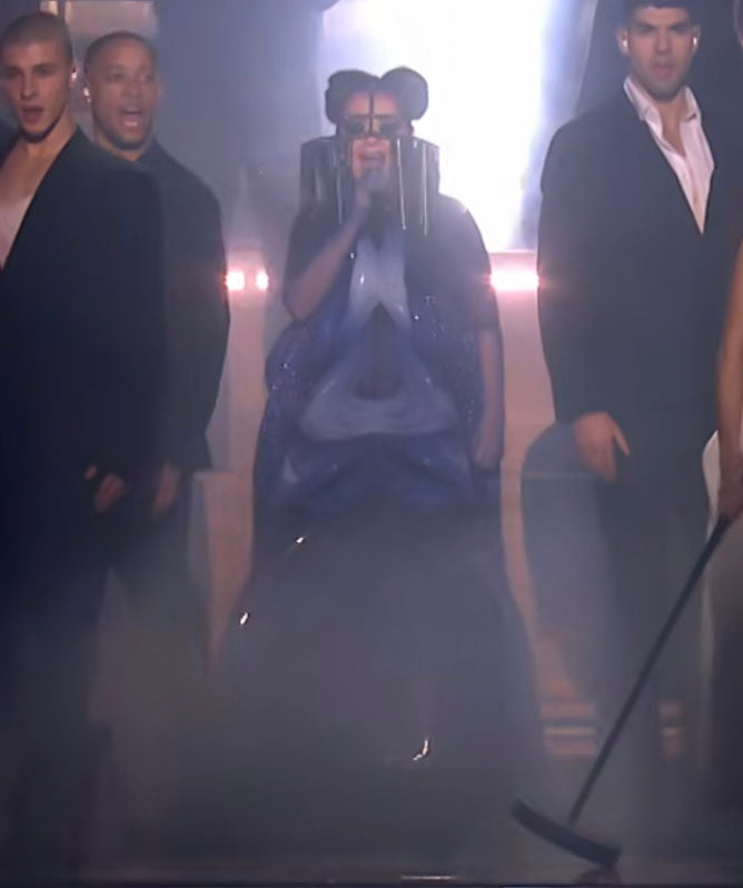 And during her performance with Rosalía, Björk never leaves the stage. She gives it her all at the rave as if she were just another dancer.